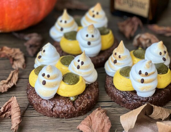 Cookie chocolat fleur de sel, crémeux potimarron, praliné graine de courges, meringue italienne